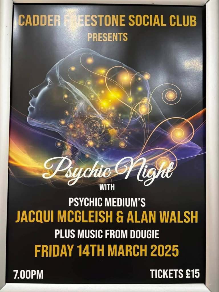 Friday 19th March – Psychic mediums – Jacqui mccleish & alan walsh — plus music from dougie!